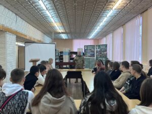 В рамках памятной даты в колледж был приглашен ветеран Вооруженных сил России, участник ликвидации аварии на Чернобыльской АЭС, подполковник запаса, участник СВО — Фарит Абдрахманович Мигранов. Он рассказал истории о жизни людей в блокадное время, которые слышал из первых уст во время обучения в Академии в г. Санкт-Петербург, о героях нашего времени, любви к Родине.